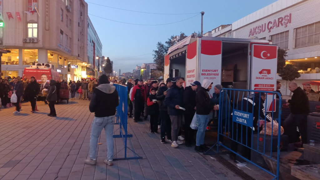 Esenyurt Cumhuriyet Meydanı’nda Esenyurt Belediyesi’nin kurduğu iftar çadırları ve seyyar araçlarda uzun kuyruklar oluştu. Çadırlar doldu, taştı. Ve bir çok insan da yemek kalmadı diyerek içeri alınmadı. Meydanın bir ucu bekleyen insanlarla kaplandı.